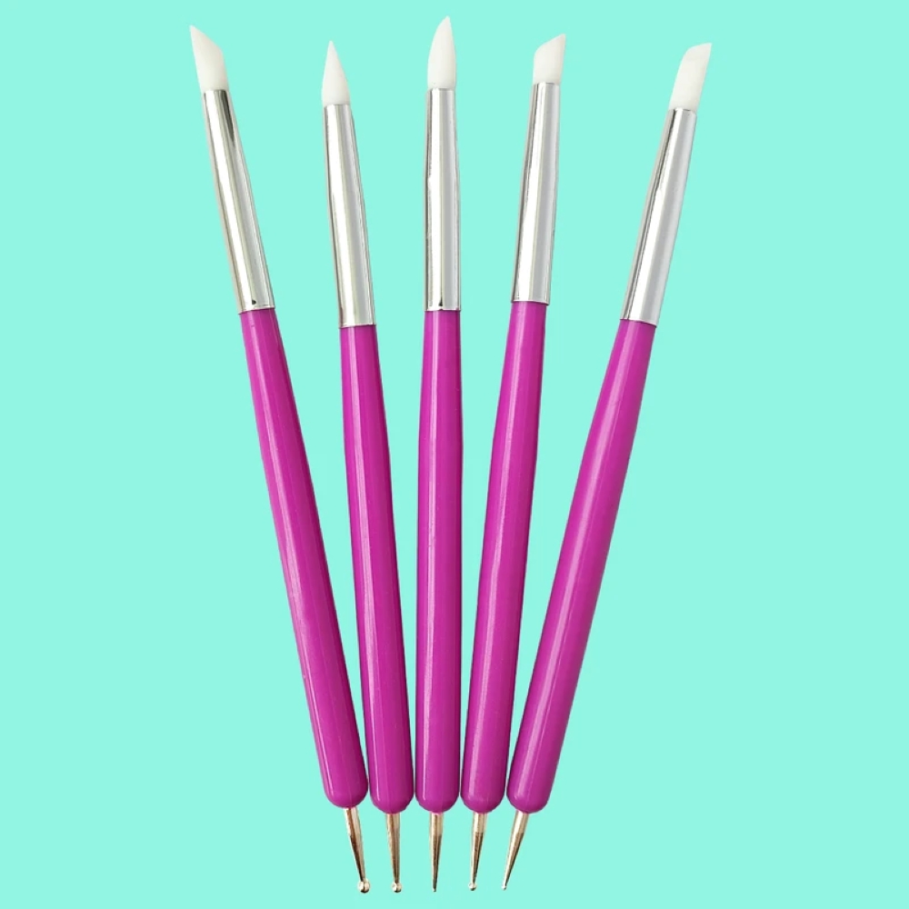 قلم طراحی دوطرفه سیلیکنی و داتینگ(ست 5 عدد)